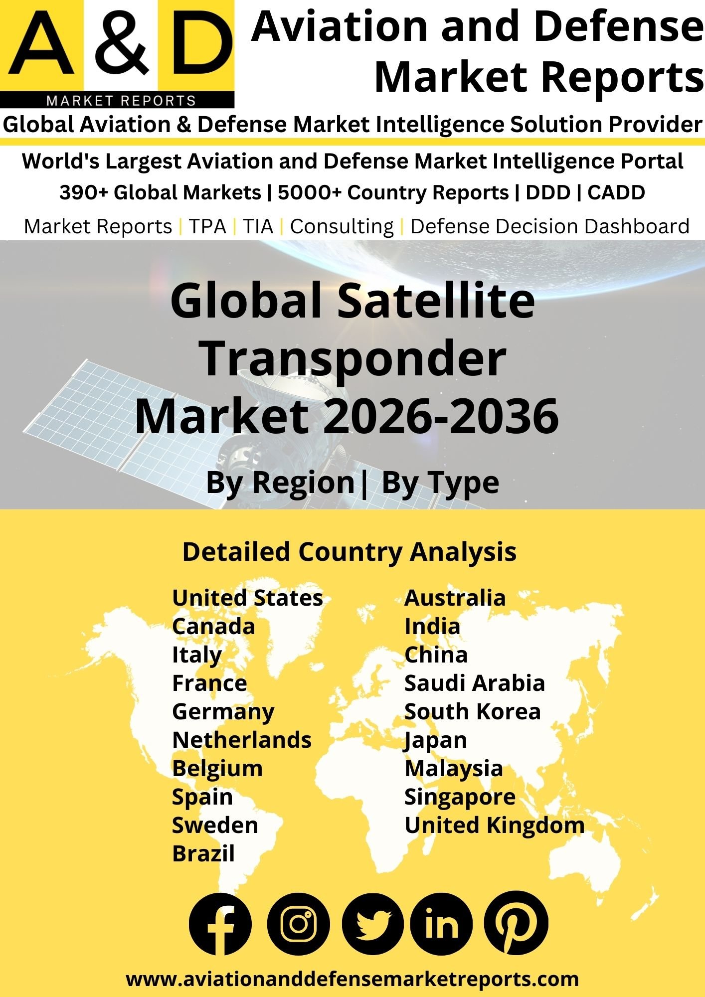 The market for satellite transponders is driven by the increasing demand for satellite-based communication services, including television broadcasting, broadband connectivity, data transmission, and remote sensing. The market forecast incorporates a thorough market size and market analysis. The market analysis includes regional market size, opportunities, drivers, and restraints. Country-wise market size is also included in the regional analysis.